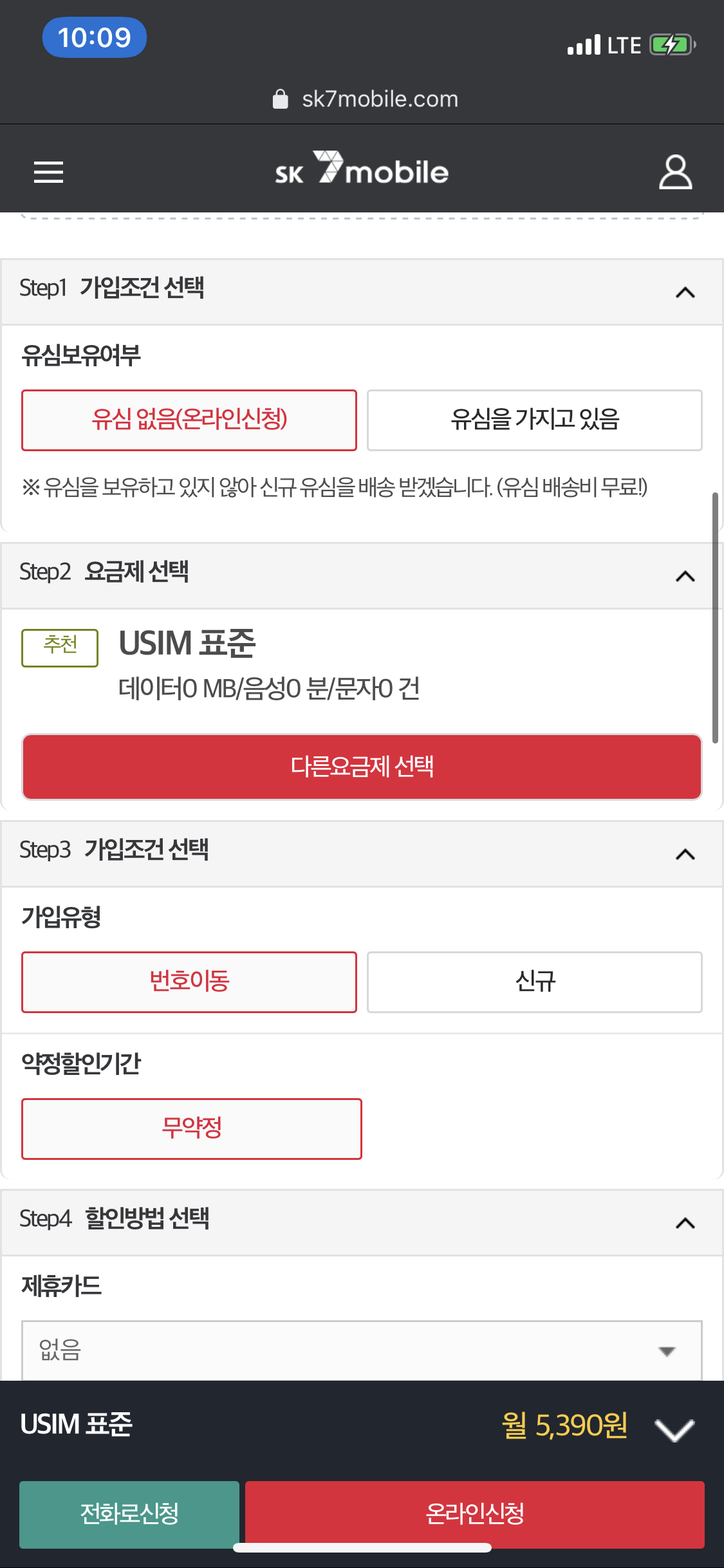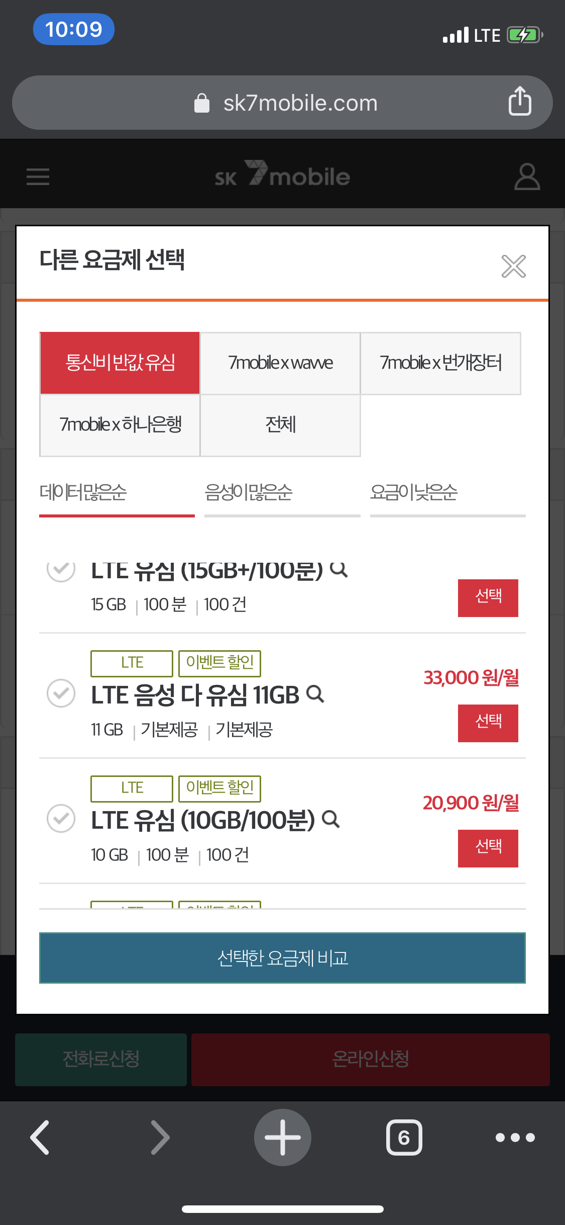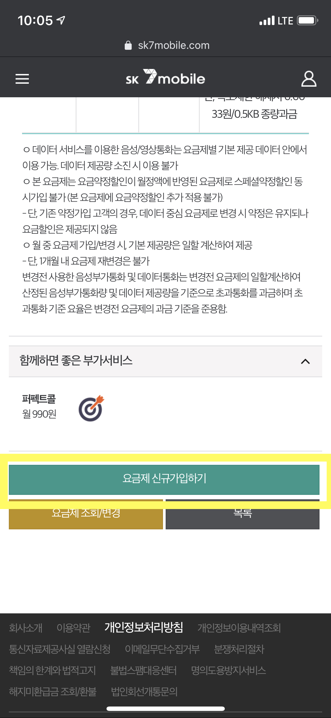 요금제 신규가입하기