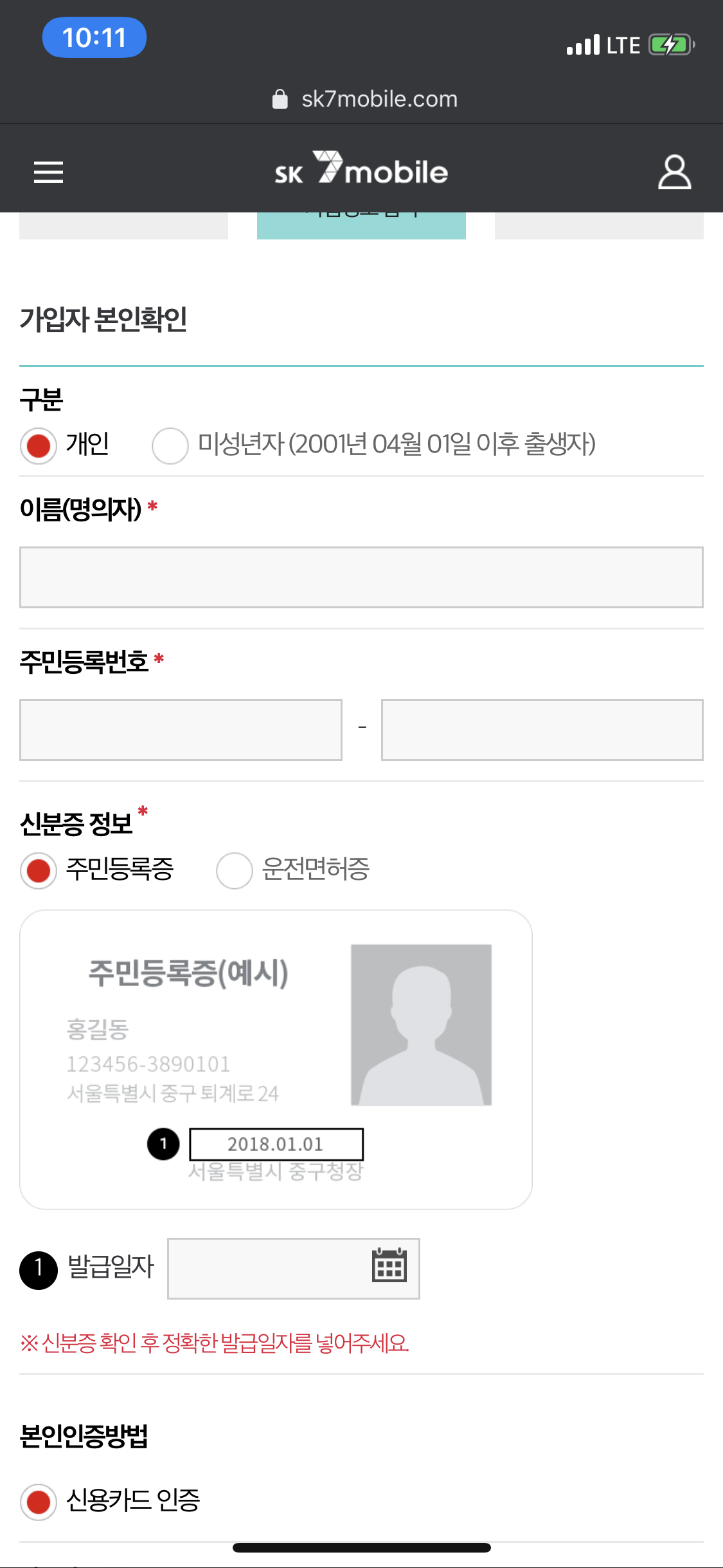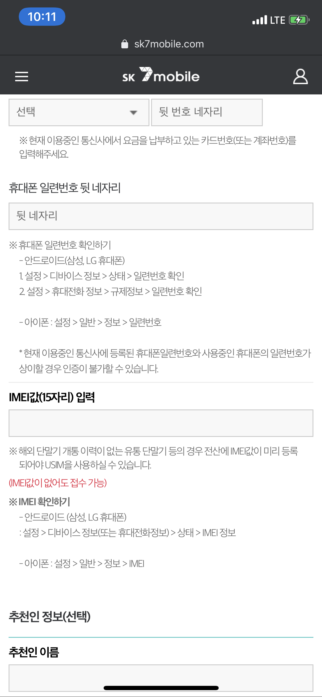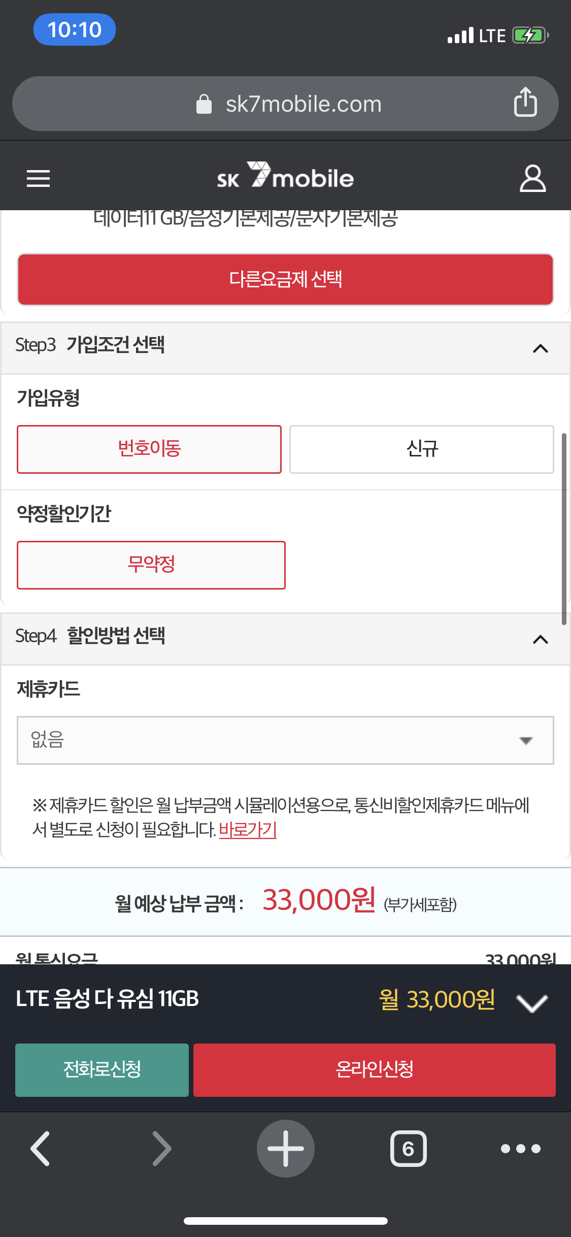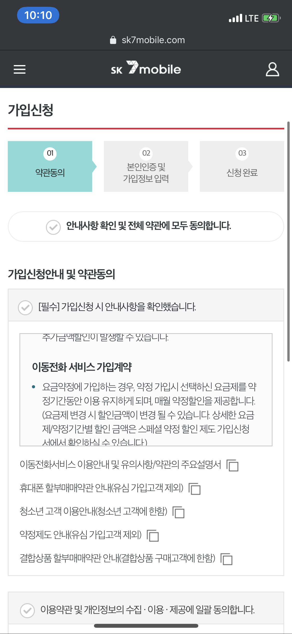 3. 요금제 신규가입 양식 작성