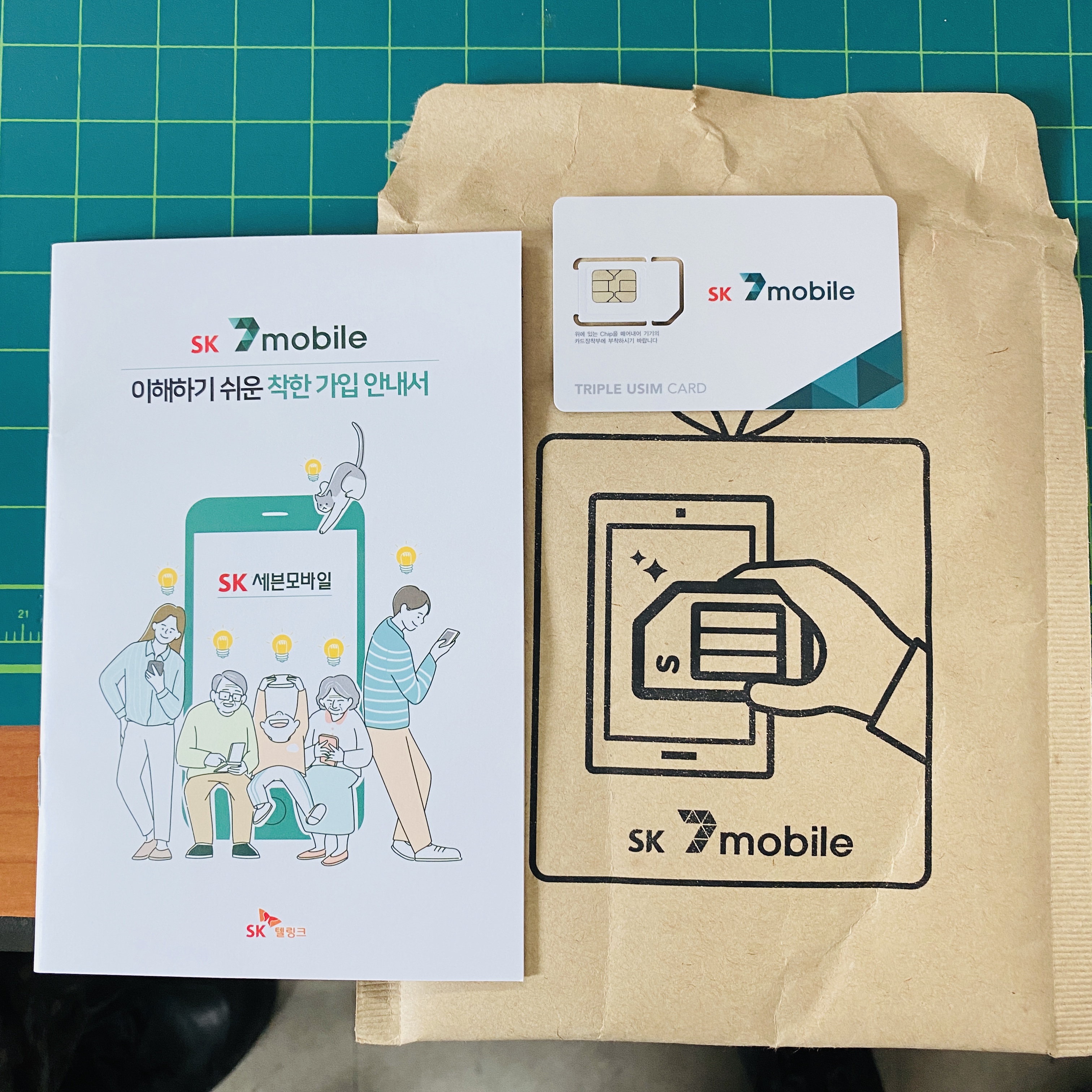 깔끔한 서류포장지에 유심과 가입 안내서가 옵니다.