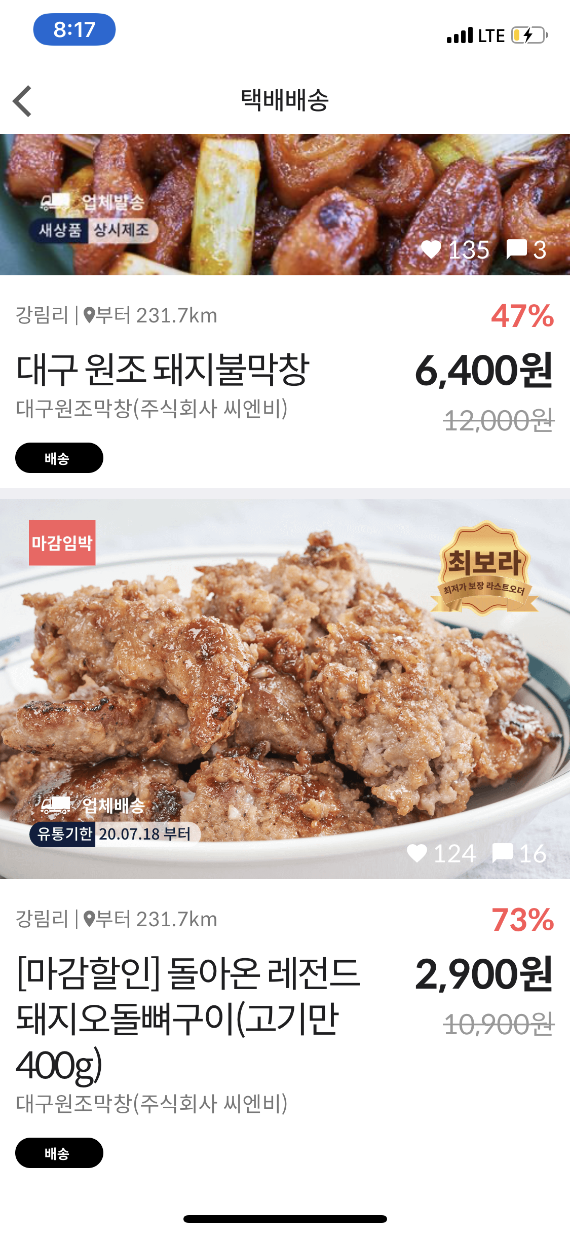 말 그래로 설정한 위치 근방의 마감 세일 상품들입니다.