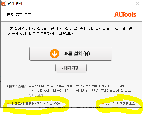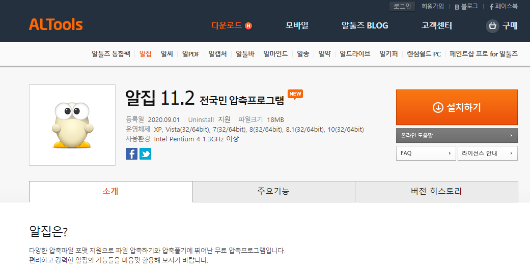 위 링크로 들어가시면 알집 설치 프로그램이 나옵니다.