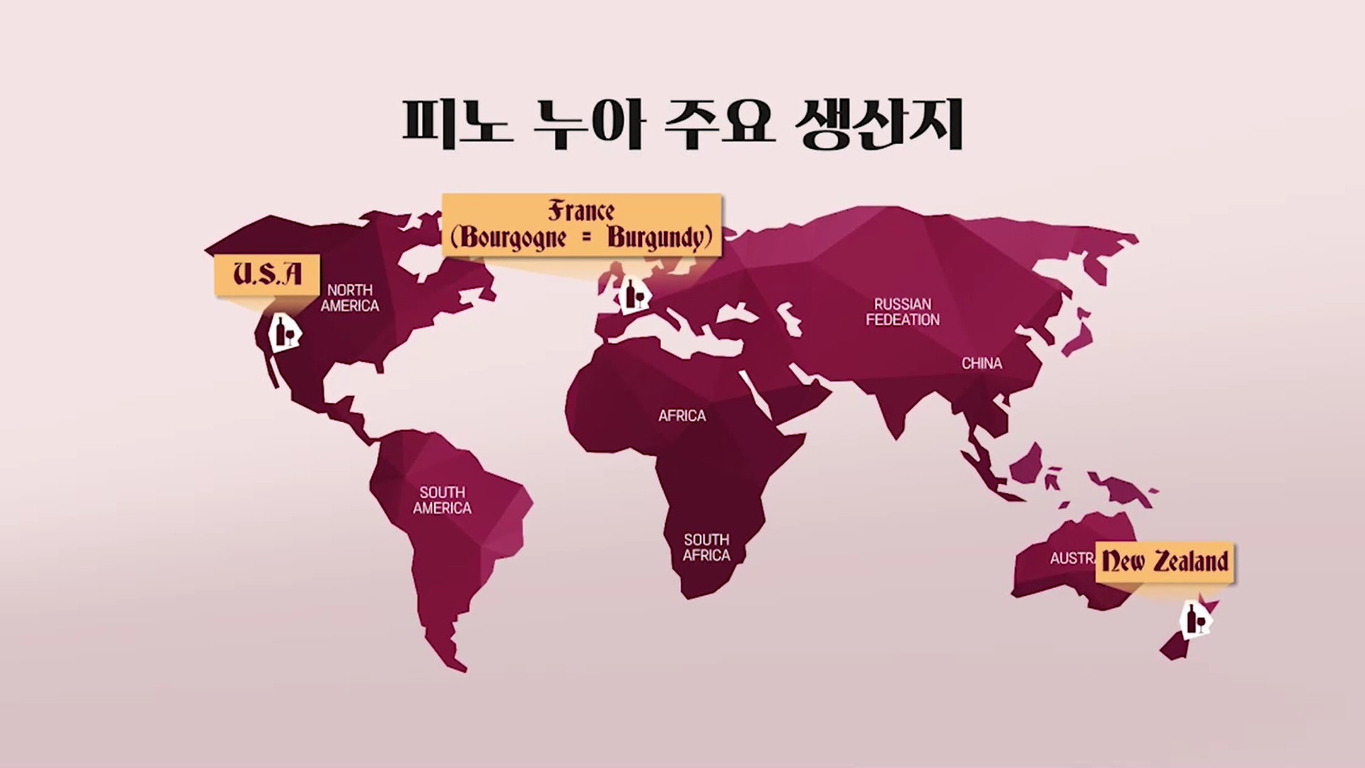대표 산지: 프랑스 부르고뉴, 미국 캘리포니아와 오리건, 뉴질랜드