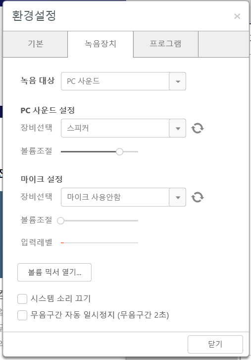 시스템 소리 끄기를 하시면 녹음하고자하는 프로그램 이외에