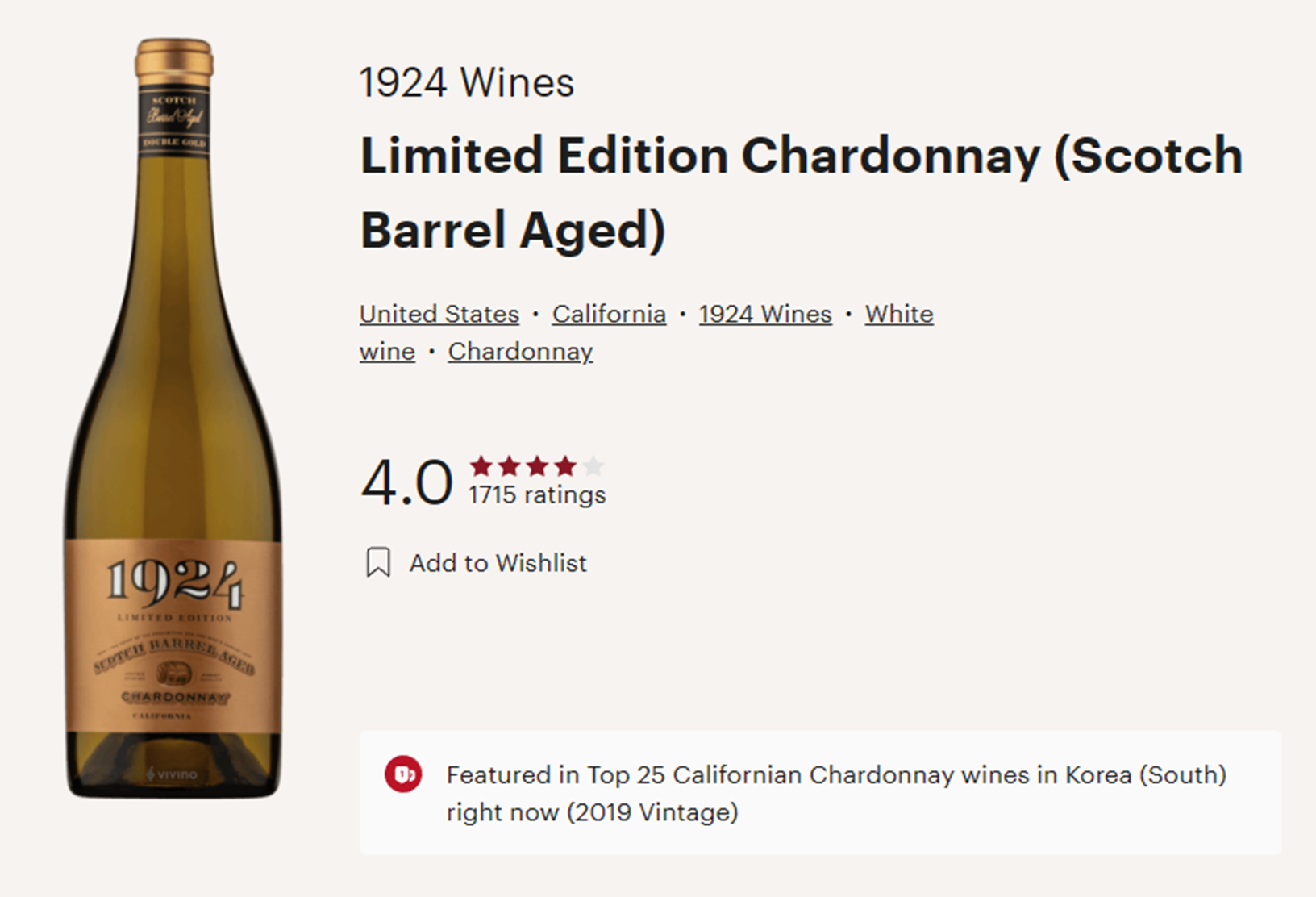01. 1924, Scotch Barrel Aged Chardonnay