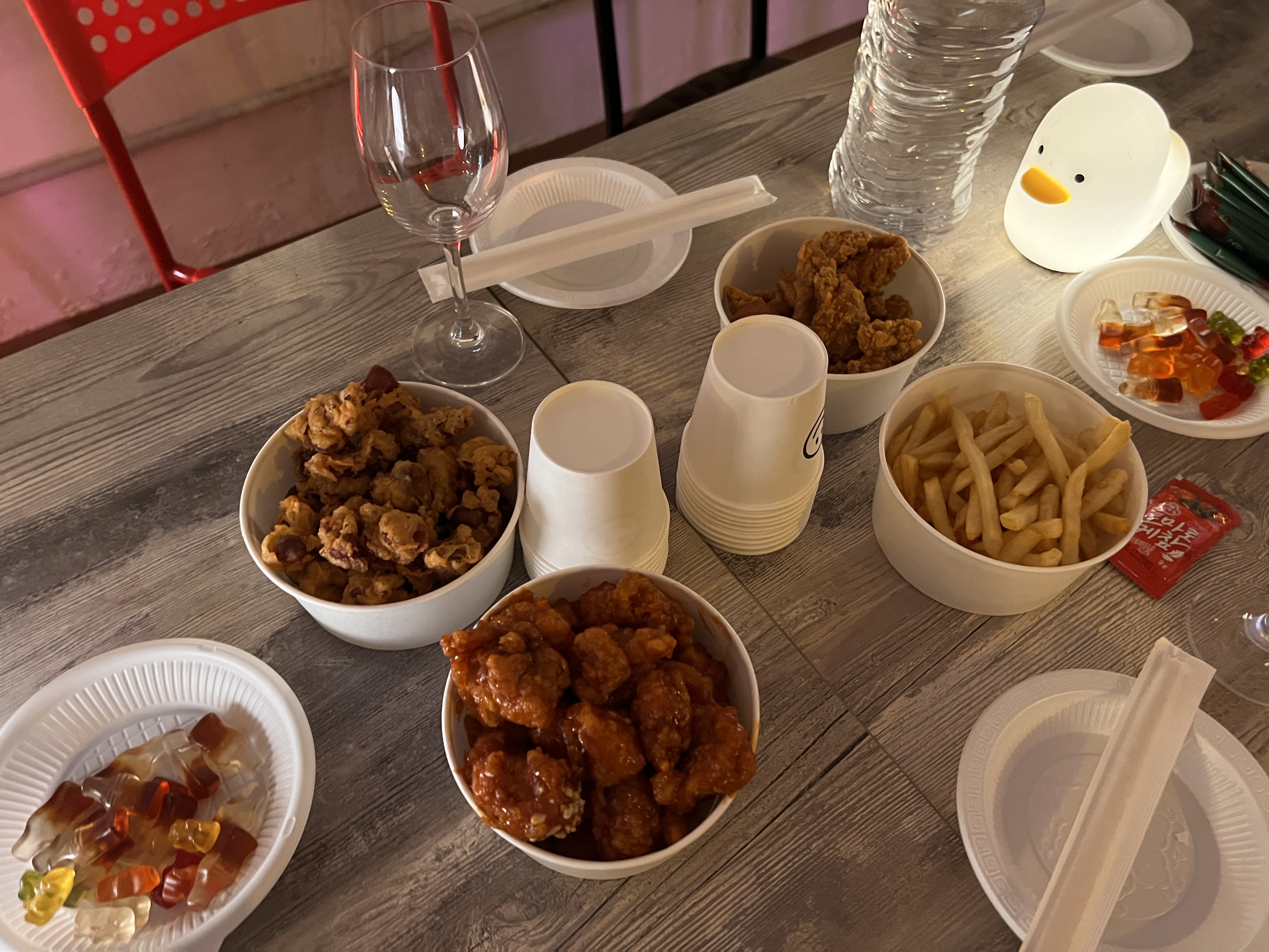 치킨이랑 닭똥집이랑 감자튀김, 치즈 등등 정말 맛있는 음식들이