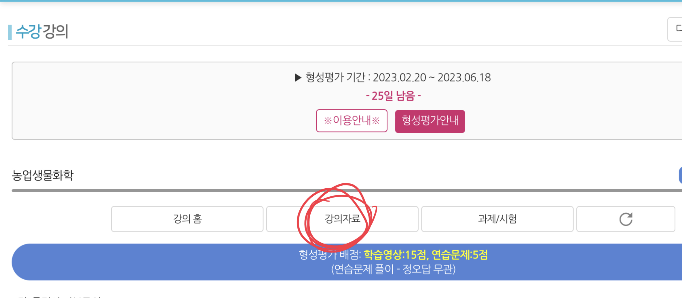 위의 학점표에서 형성평가 = 강의 수강 정도입니다.