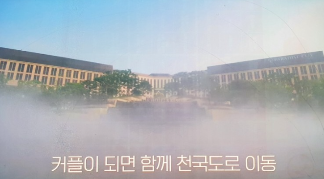 승리한 남성분 1,2위는 원하는 이성을 선택해서 천국도로 이동하여 대화를 나눕니다.
