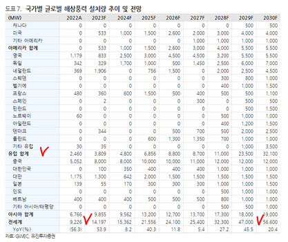 풍력 발전 중 해상풍력의 성장성이 아주 크다.