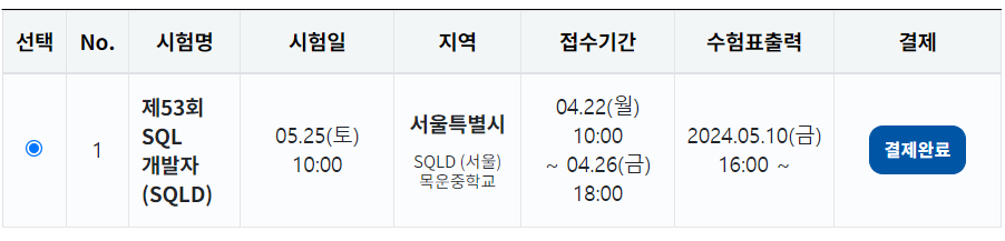 지난 2월에 5월에 시행되는 SQLD 자격증을 접수하려는 계획을 세우고,