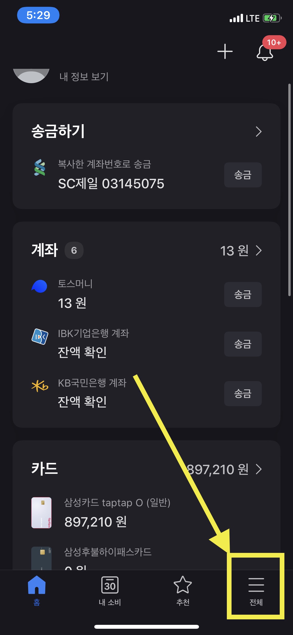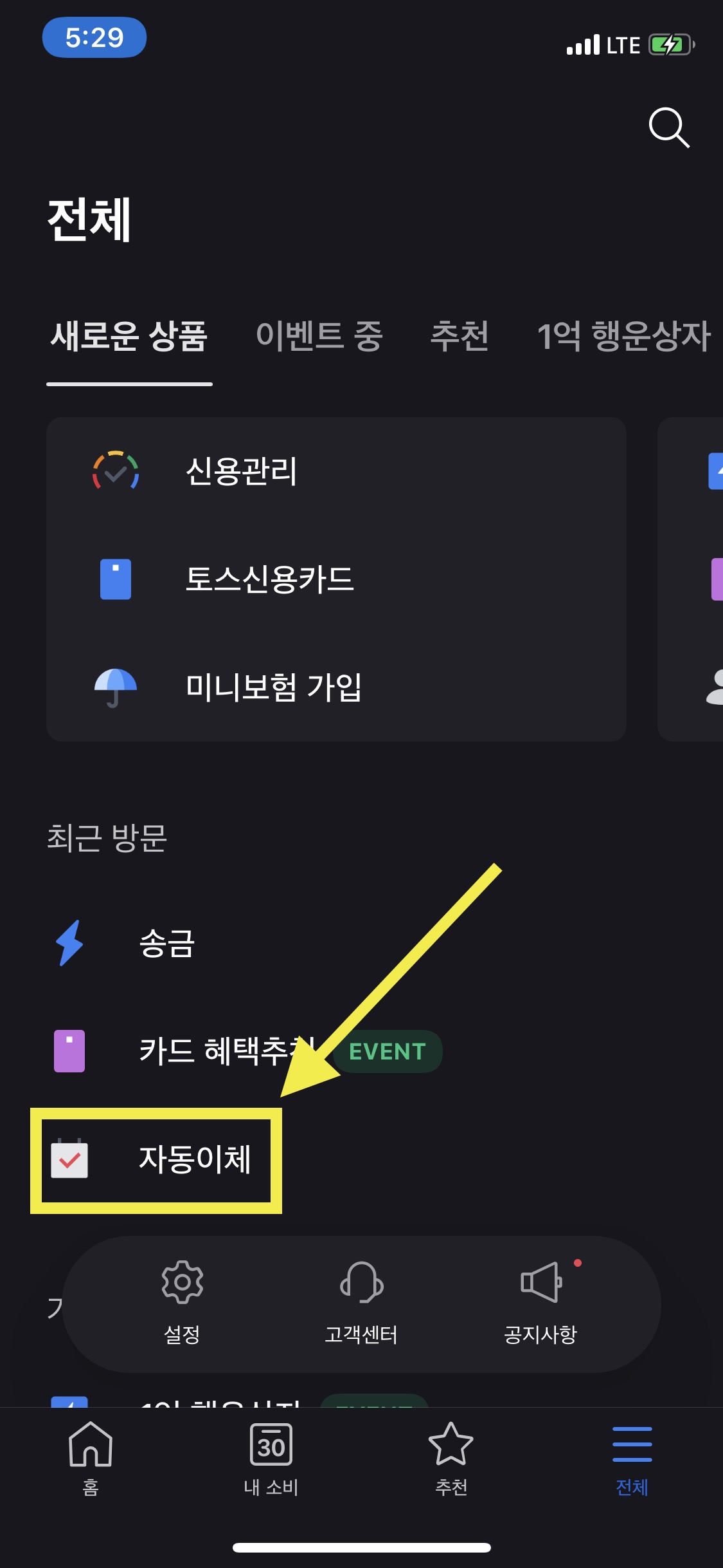 2. TOSS 첫 번째 화면에서 전체 누르기