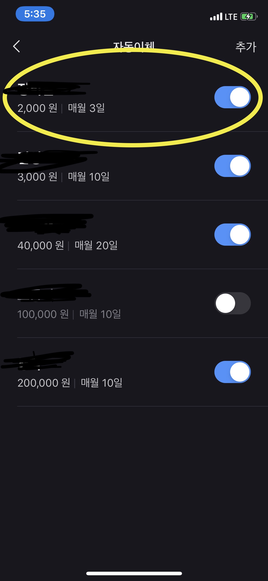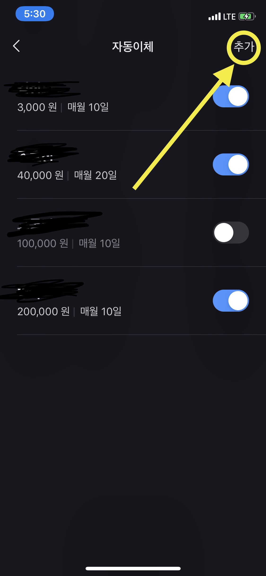 5. 자동이체 추가