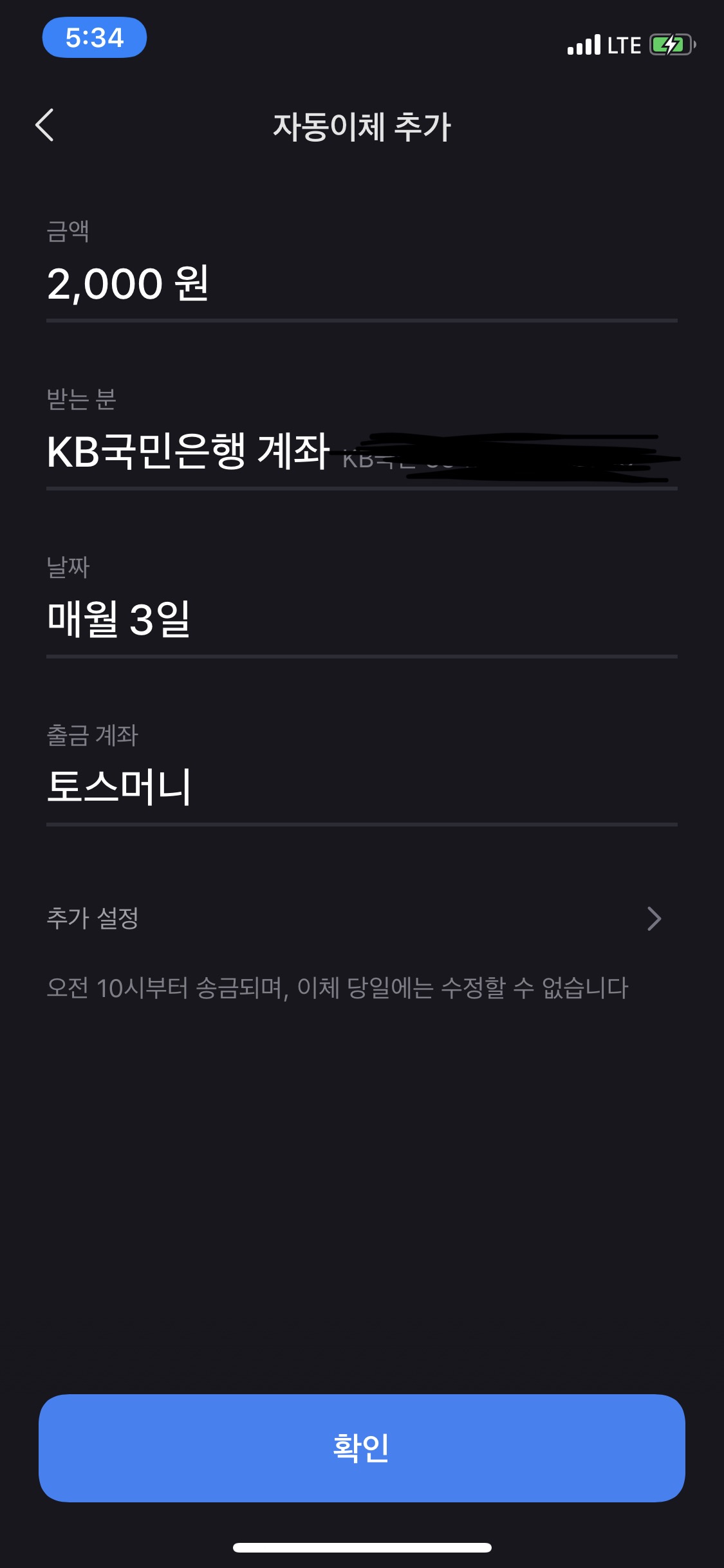 6. 자동이체 등록 완료!